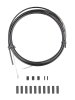 Das Kit besteht aus geschmierter Zughülle, vorgedehnten Edelstahlzügen, Klemmhülsen, Rahmenschützern und Zugendkappen für vordere und hintere Schaltung.